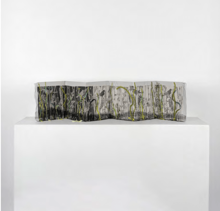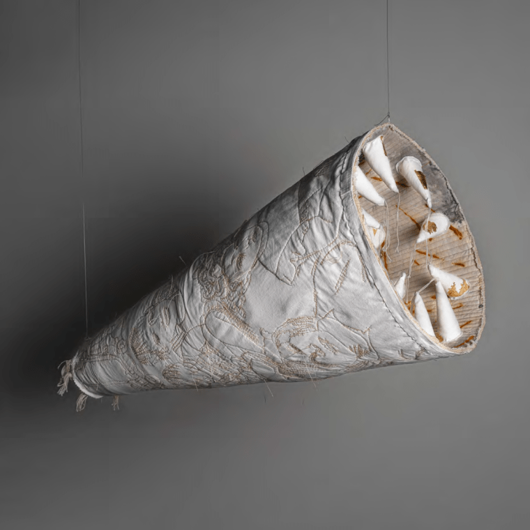 The projected concept of a fibre exhibition sets its self apart from the traditional – with the unconventional intermixing and intermingling of ideas, through the connectivity of a theme; utilising, yet unifying, in the different fibre mediums – encompassing the use of stitch, fibre, fabric, print, found objects and surface design, in a visually dynamic exhibition.