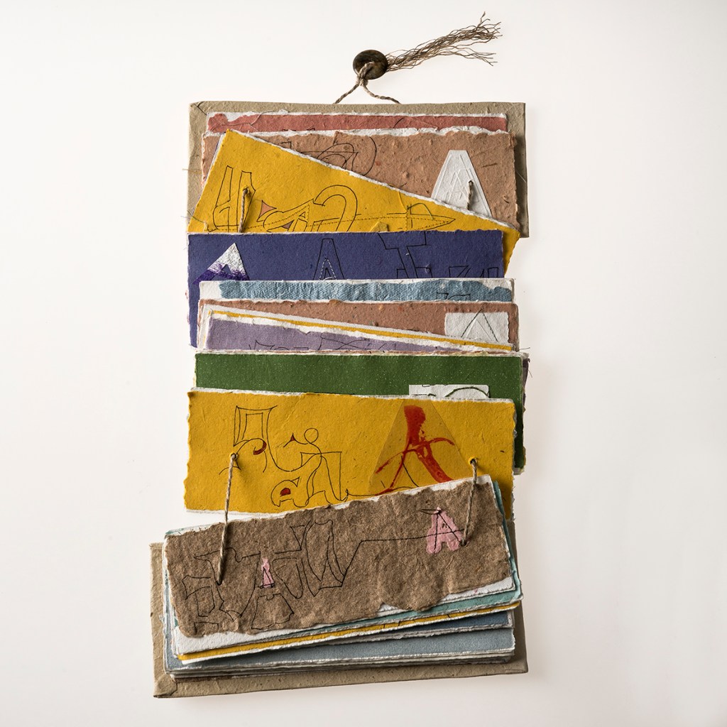 As a calligraphic artist with a background in textiles, I like to combine lettering and mark-making with fabric and use paper or parchment like fabric as a base for stitching.