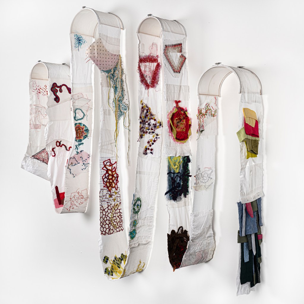 The highly-anticipated fifth exhibition of untethered fibre artists inc. is Found Narrative.