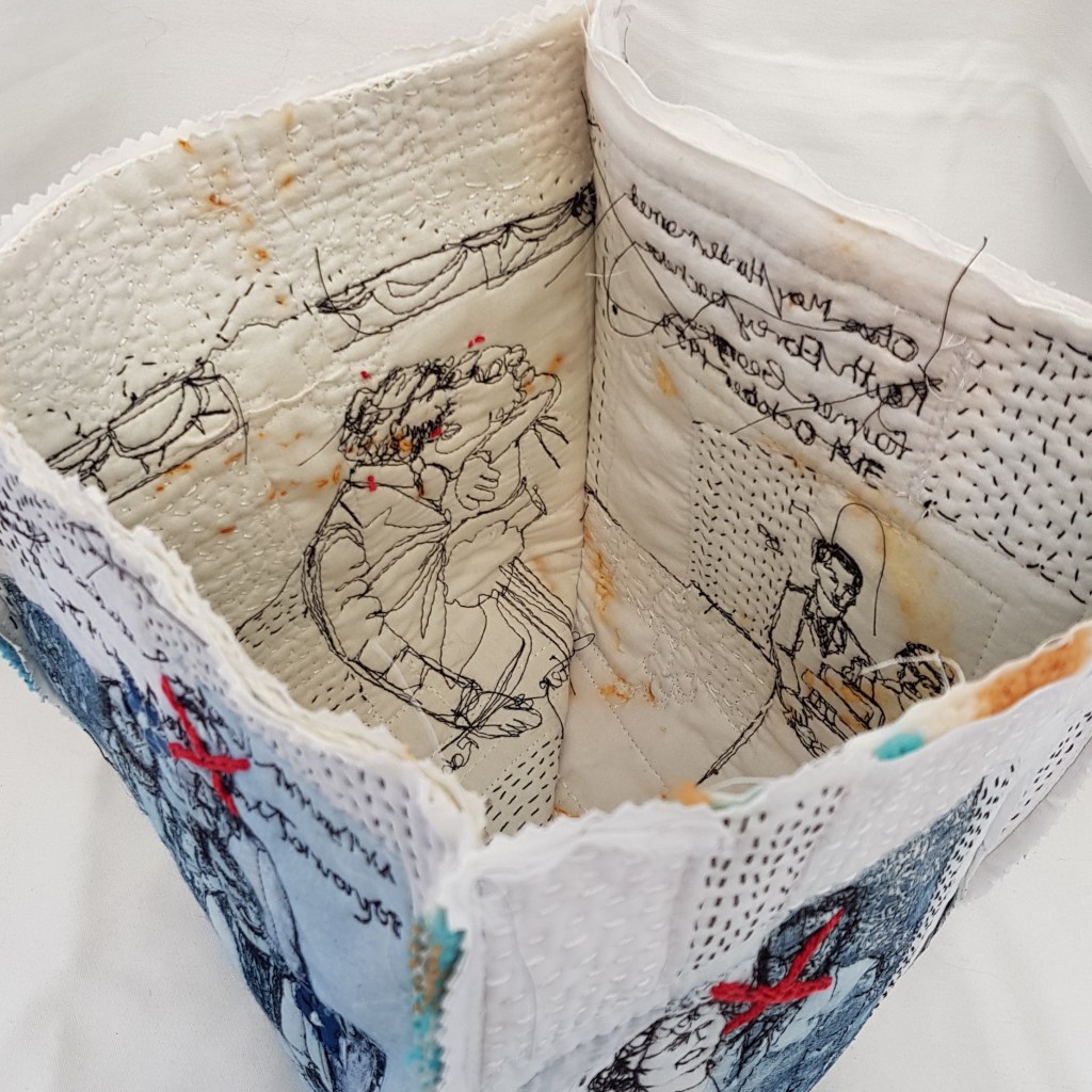 I prefer to work in series exploring a concept in a number of related works, working in a range of materials and techniques selected to best translate concept into material art objects. Combining modernist artforms such as painting, drawing and printmaking with what was once called craft techniques, my practice intentionally challenges old paradigms of artist and artwork. Working with cloth and stitch, using a sewing machine as a drawing tool my works layer technique to build an image.